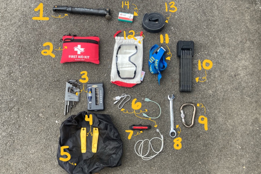 This is gear I keep on my bike at all times. Most of this I haven’t needed on the road, but because it’s all specific to my Urban Arrow, I just keep it on my bike so when I need to do repairs I know where it is.