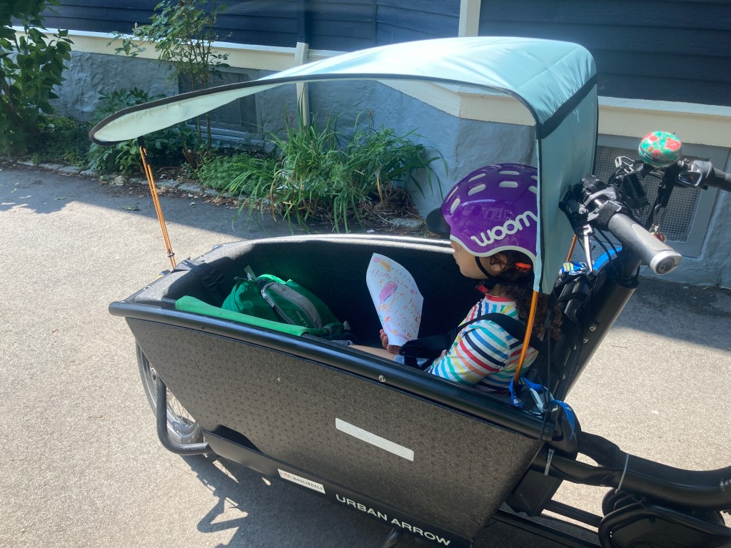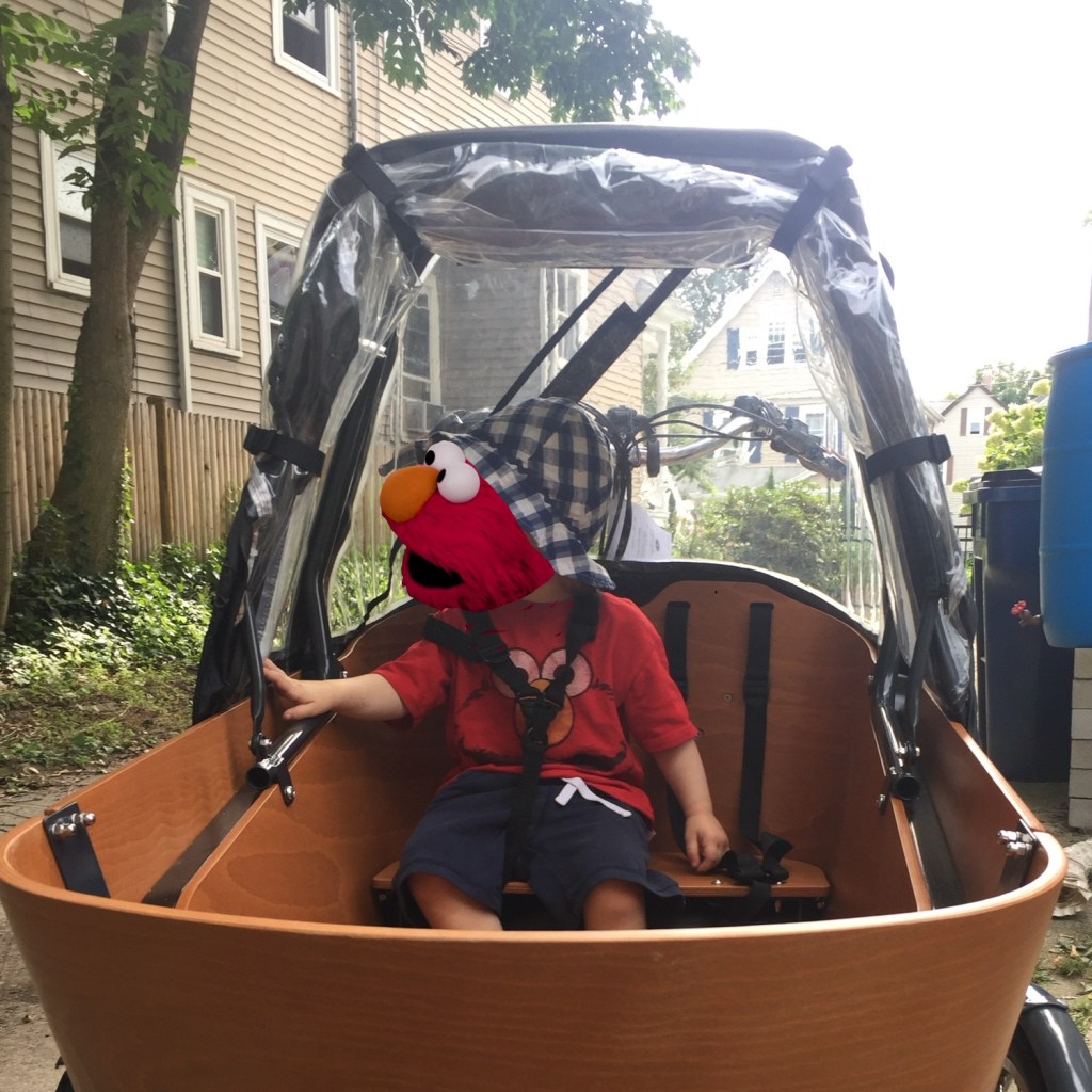 Most box bike companies offer some type of rain cover, and some also offer a shade cover. Unlike my Babboe cover, bike manufacturers often have really poor designs for the passenger protection.