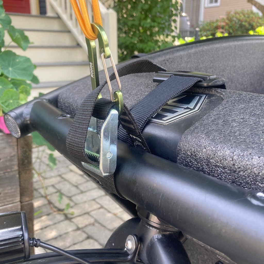 The Pop Top frame, however is awesome. It is very sturdy and I often grabbed it when I was backing the bike or putting it on/taking it off the kickstand to give me leverage when both of my kids were on the back. If you have passenger bars on your long tail, you could likely use the Pop Top frame (though, don’t take my word on it because I haven’t actually tried doing this!).