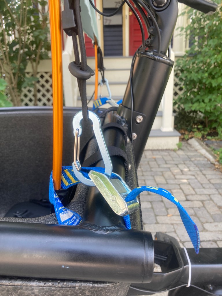 This is how I installed the sunshade on an Urban Arrow — I could see this working on most box bikes — bakfietsen and trikes, with some minor modifications. I think it could also work on a longtail, too.